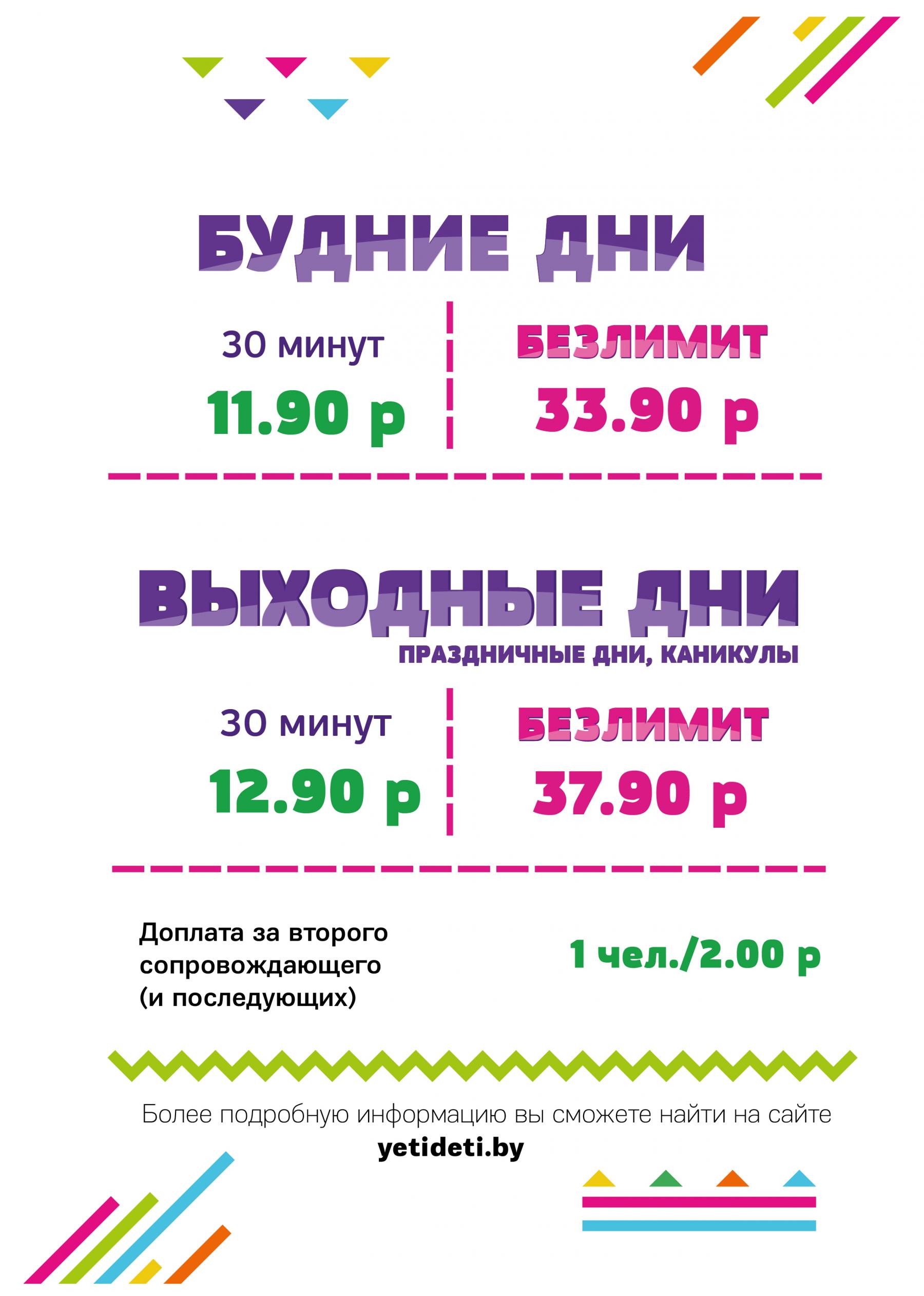 Цены в детском развлекательном центре «Йети и Дети» в Минске ТЦ "Galleria"